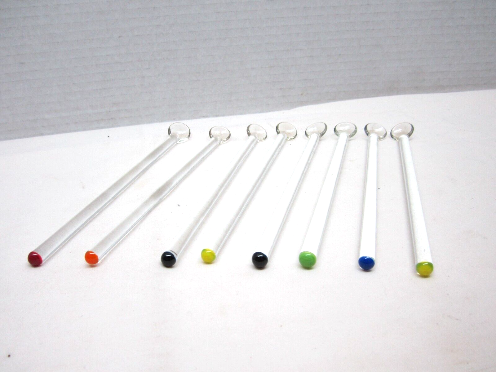 8 Vintage Color Coded Glass Swizzle Stir Sticks With Spoons Ebay
